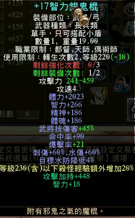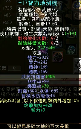 214軍 +17地列棍 +15 210套 八門全開 4真天戟