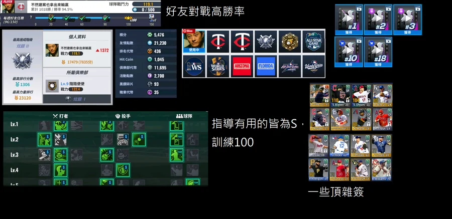 投打雙默契,所有類型升階各一張(包含簽名那種),卡片造型卷140,無其它資源,售出前都會持續快刷