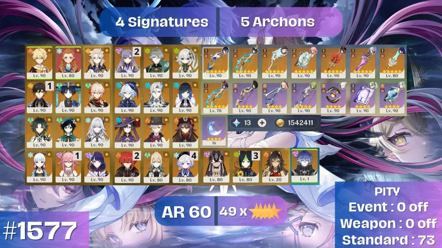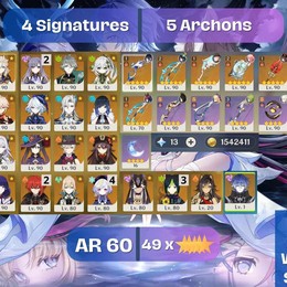 【男、60等、39金角、10金武】⭐胡桃+夜蘭+綾華有專武_5神_萬葉_菲林斯_絲柯克_水龍_散兵_林尼_1命八重