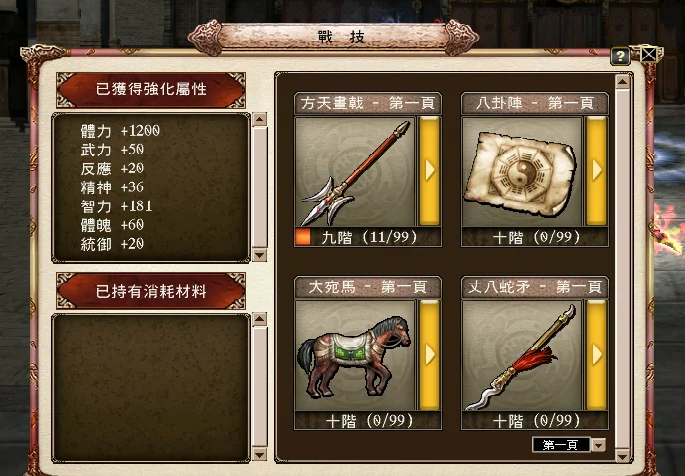 戰技書有吞滿集火次數、陰陽滅元大傷