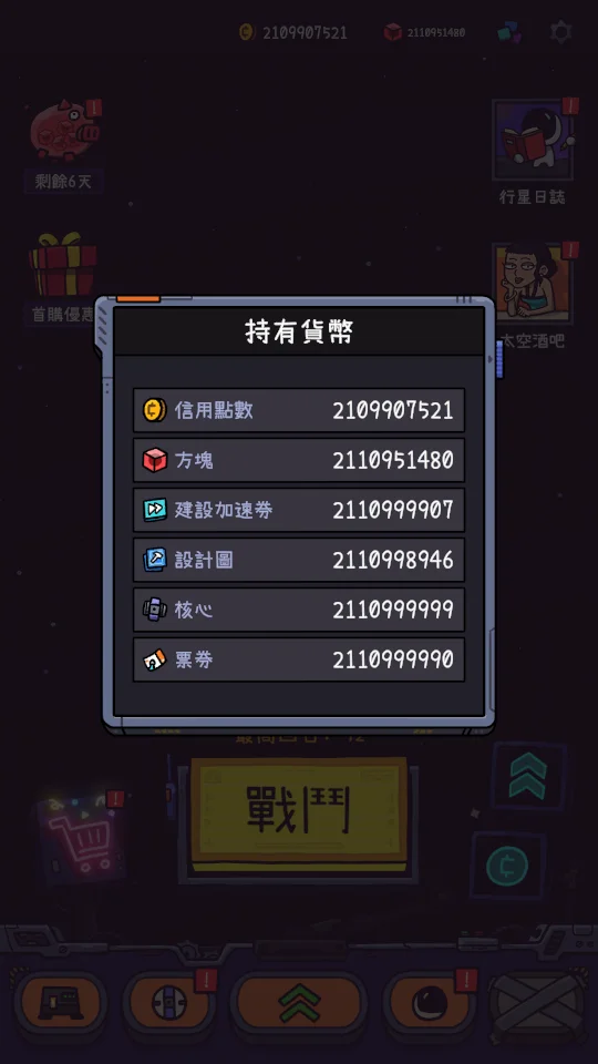 太空XYZ放置型塔防 21億方塊/加速卷/設計圖/金幣等 雙平台 加藤超の金手指
