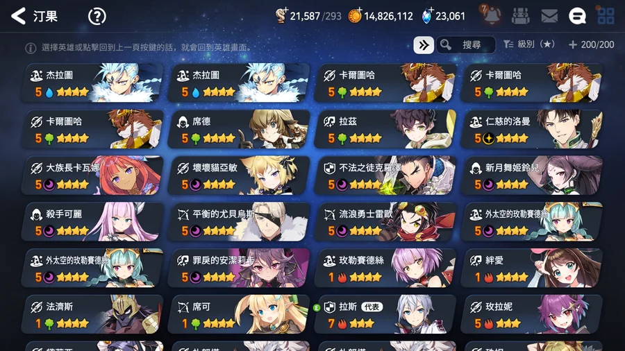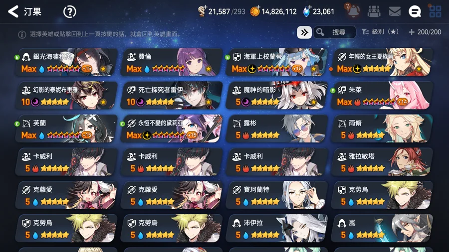▶適合新手、中手、小號,有完美開局多隻TOP光暗五星,不是資源玩爛的帳號,培養都往正確方向,多書籤跟天空石讓接下來抽合作角色都不是問題