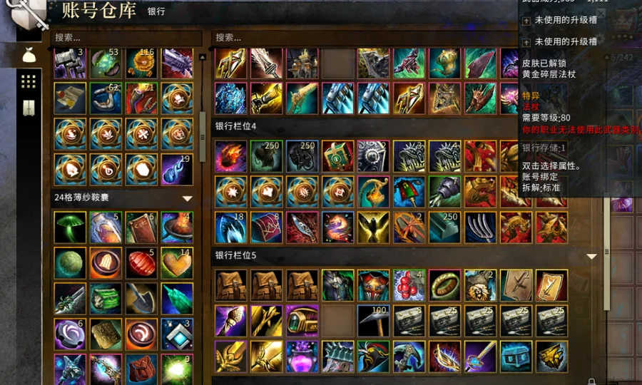 【JWWLC0379】按熱門篩選:全 DLC,凝心,匯流|按傳奇飾品:奧羅拉|按職業:工程師|按種族:人類|6 花 3 戶齊、全 DLC,7 把傳武、灌注很多、碎層 5+9 灌注都齊全、永久銀行、無限碎層藥劑、還有一點特效灌注、傳奇武器若干、昇華武器非常多、星靈坐騎皮膚有好幾個、各種材料也有不少、還有 3000 金幣 詳情看圖【靈魂之洲】【自主截圖】
