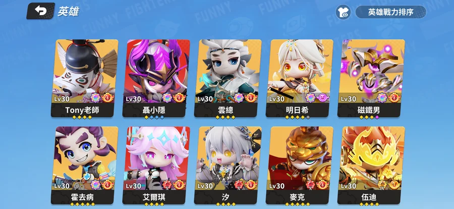 英雄大部分都已經升滿技能或是快滿
