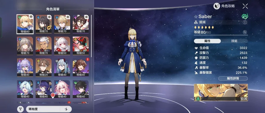 【女、61等、8金角、4金專】Saber 4+1 活動未破完 主線破完