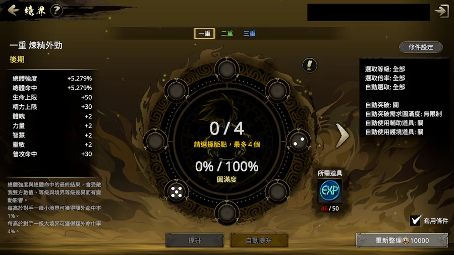幻象刀LV4、地裂波LV4、護身氣勁LV4、力大無窮LV4