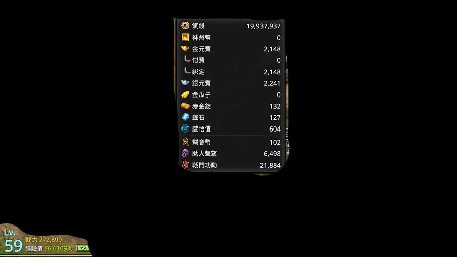 🔰江湖等級、戰力值、元寶、銅幣如圖,會盡量更新(第一、二張)圖片,個幣值數量請以此為主