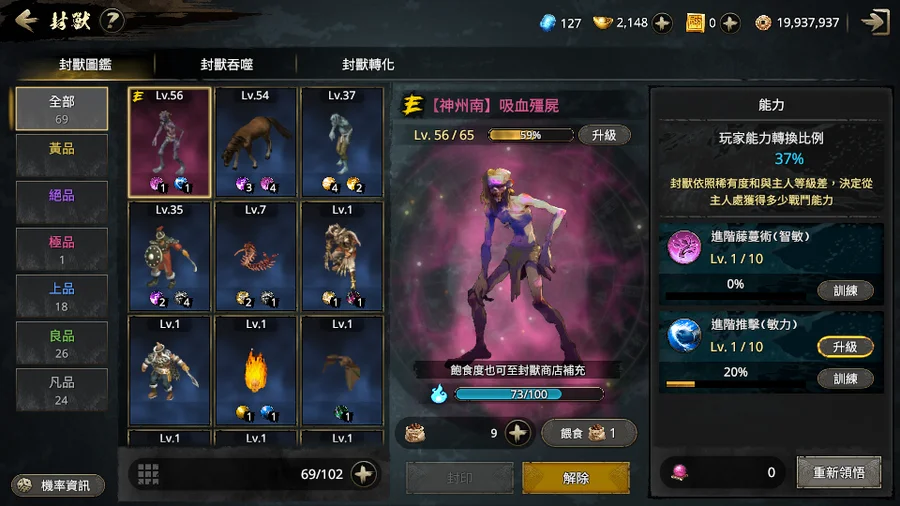 聖火輪LV1、梵天火輪LV1、生命增幅LV4、體魄修練LV4
