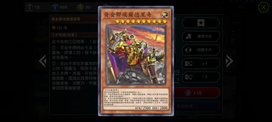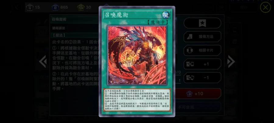 注目卡片(依序為怪獸卡、魔法卡、陷阱卡):
