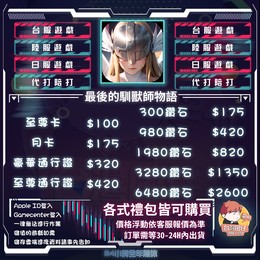 【1980鑽石=820元】🏆最後的馴獸師物語台服代儲🏆24H客服🔥台灣囝仔🔥退刷包賠