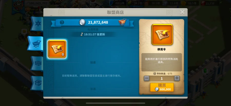 移民令:背包29+聯盟銀幣可換36張(買號完可幫購買)
