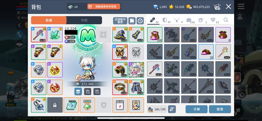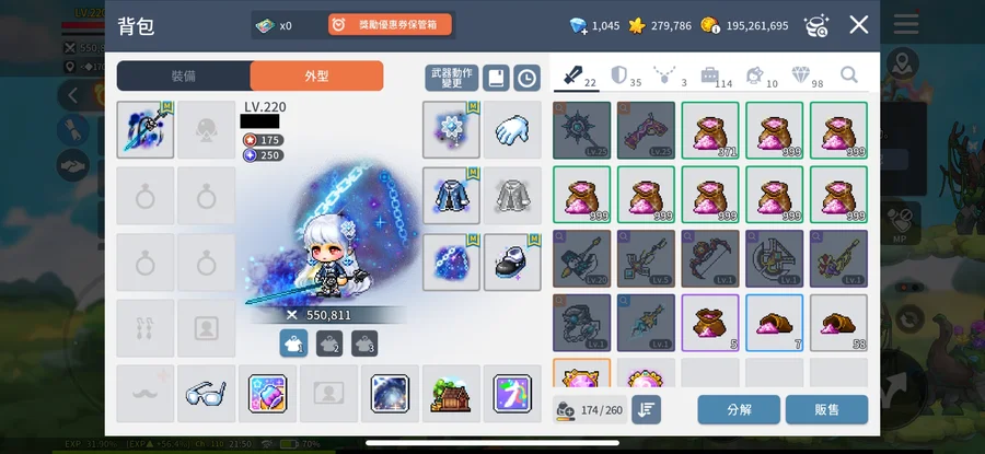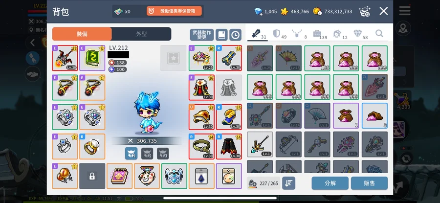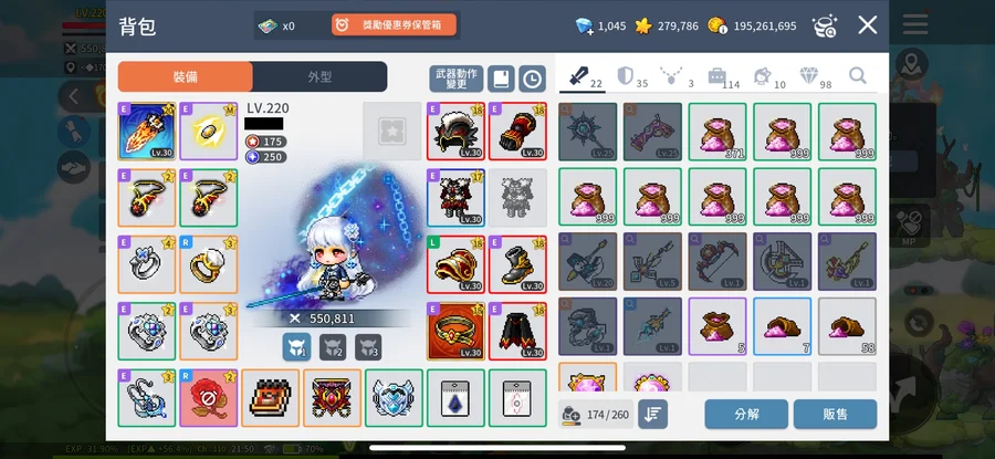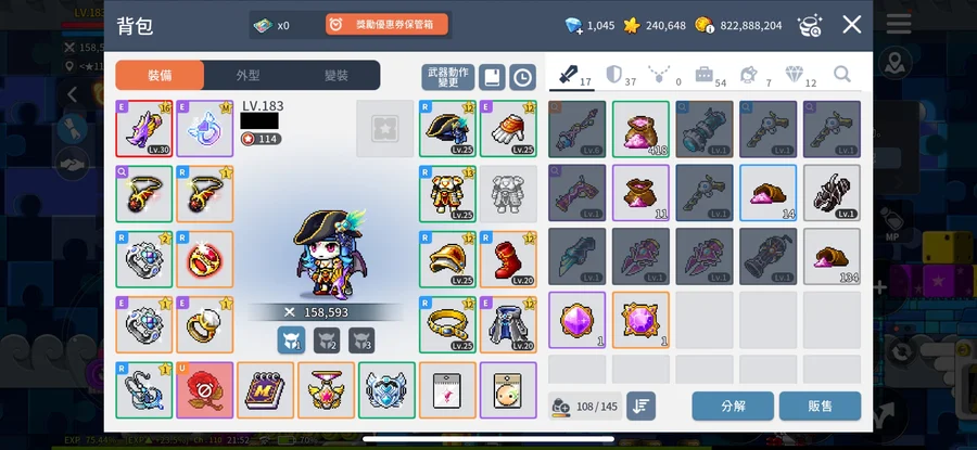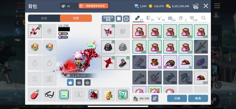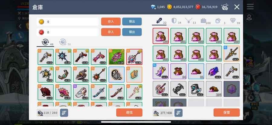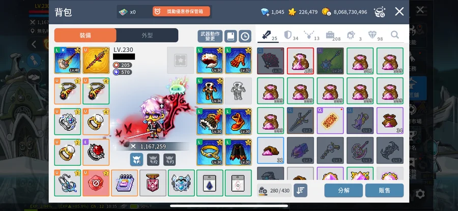 如圖 楓幣與圖上裝備物品全保留 不額外清本尊楓幣80億 加分身身上的大概100億
