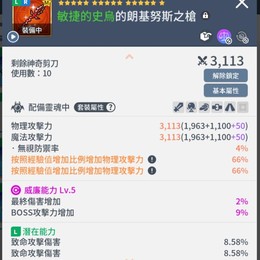 武器 - 21星死靈、紋章爆傷11%(屬性未開)