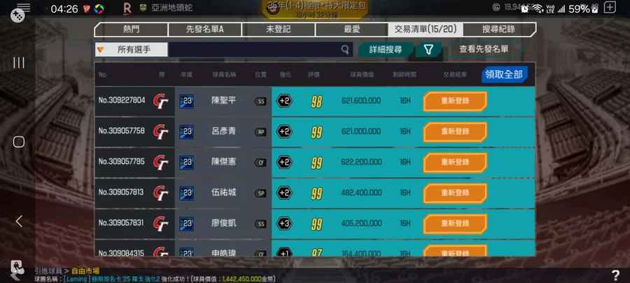【9999等】4開頭價錢含以上的角色一律賣新臺幣300 其他100元