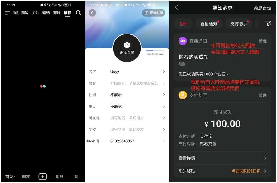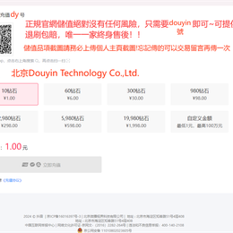 抖音幣儲值請在備註欄填寫抖音號和暱稱,