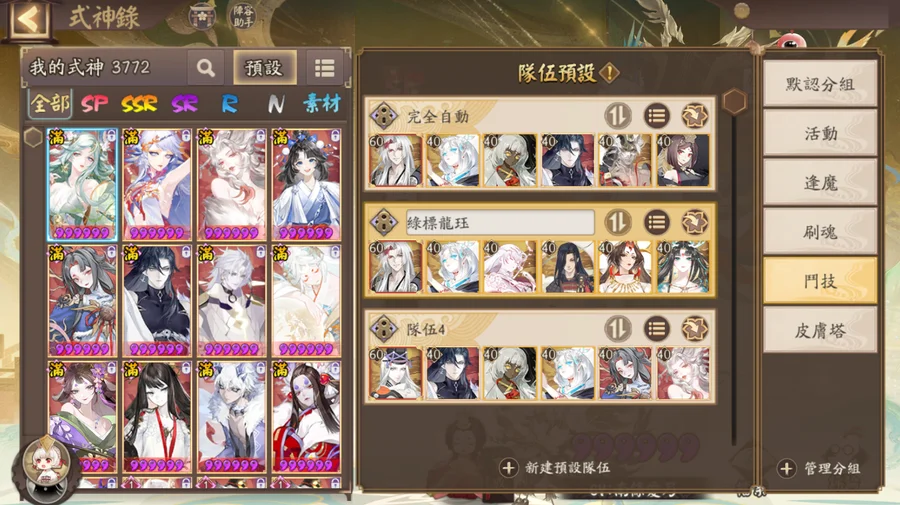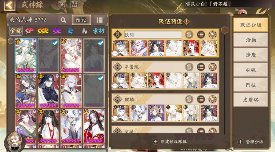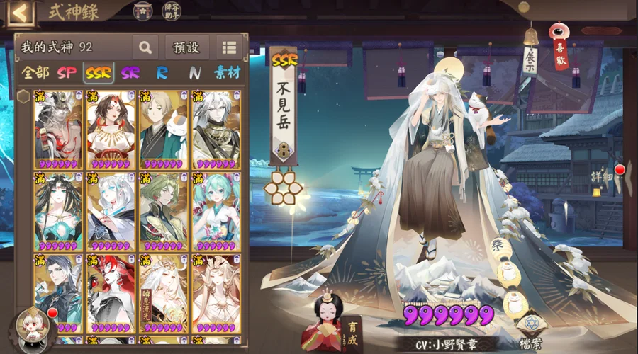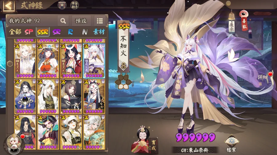SSR全圖鑑收集(55/55)SP除了以下式神其他都有(33/45):