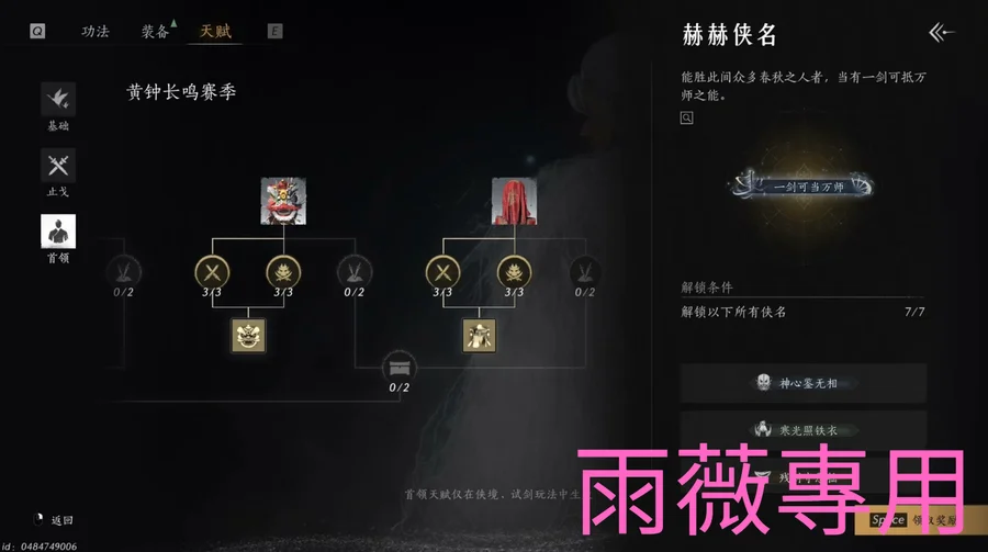 ✅首領天賦 三項、一劍可擋萬師稱號