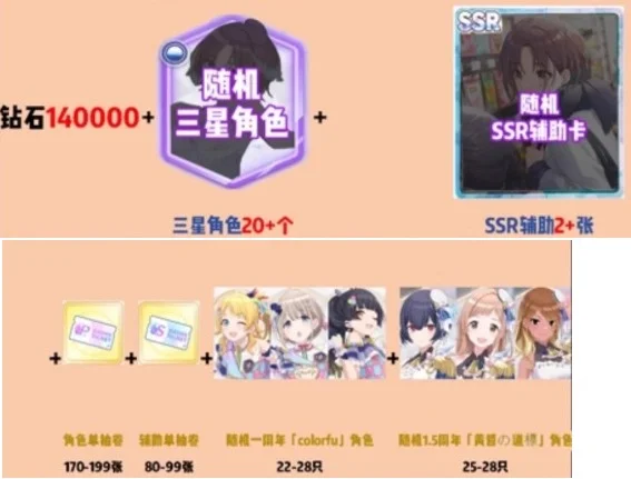 【14萬~15萬鑽 3星20+個(非重複 非1.2星升上的) ssr輔助*2 +角色單抽170+張+輔助抽80+張 +大量角色】其他如圖