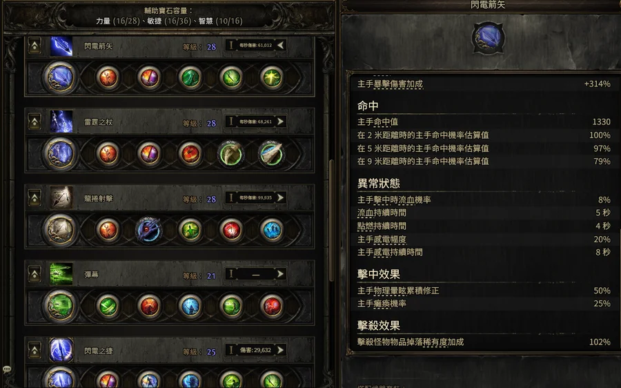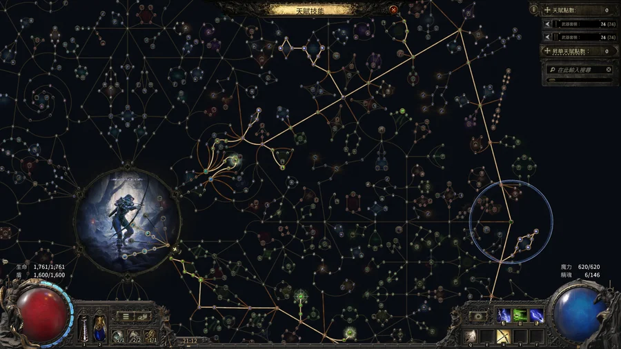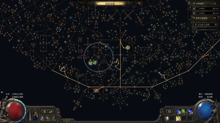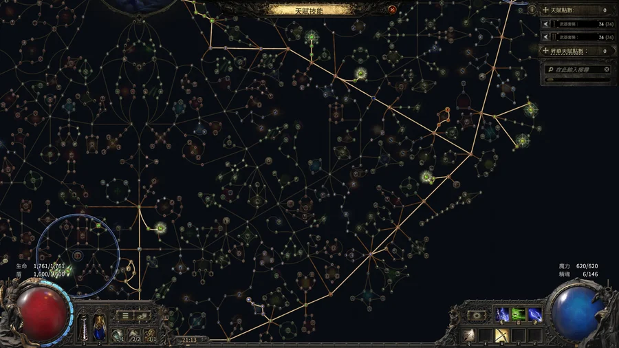 (含天賦點法、天賦珠寶槽使用的珠寶、整套21級(瓦成功)技能寶石)