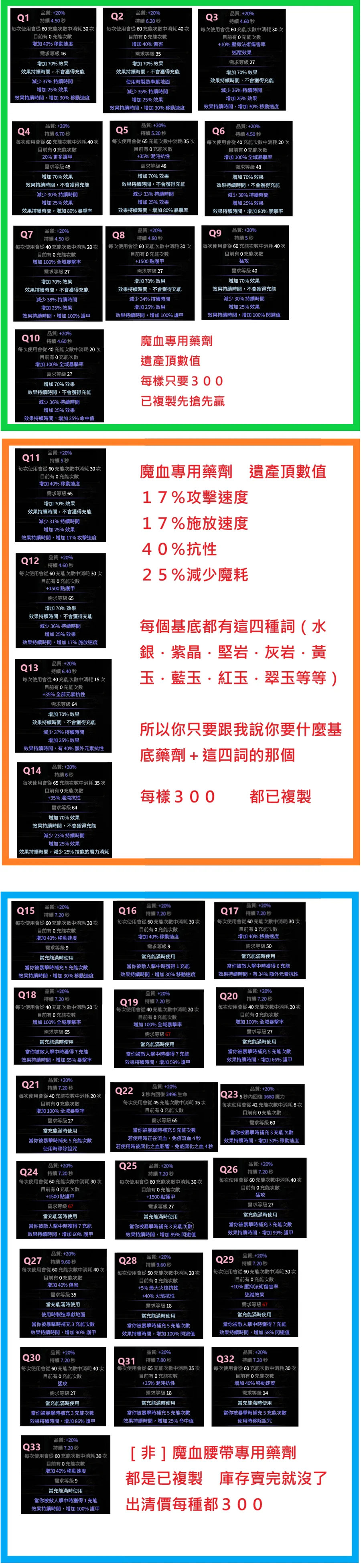 1. 所有商品都是【已複製】 所以工藝跟附魔這些都是沒辦法做修改 除了項鍊塗油附魔還可以更改