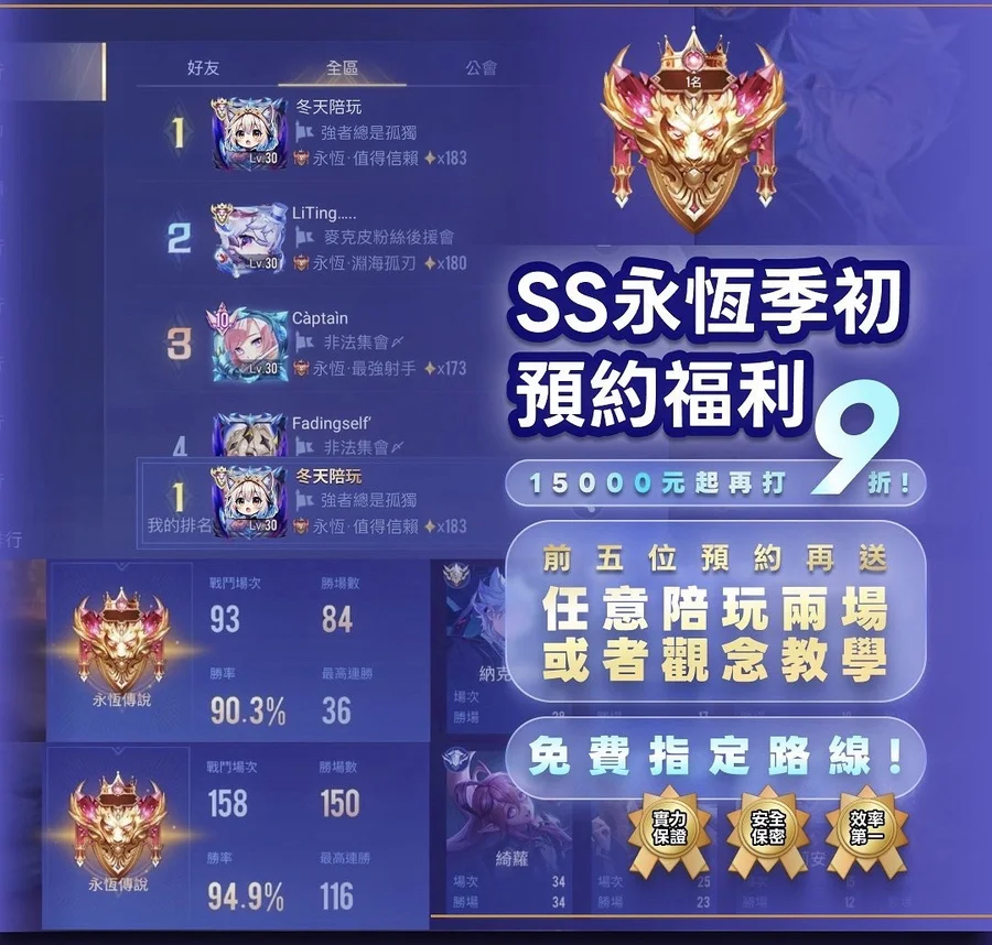 冬天❄️代打陪打 每季固定永恆第一 前職業 城市賽冠軍代練 效率品質最穩最高