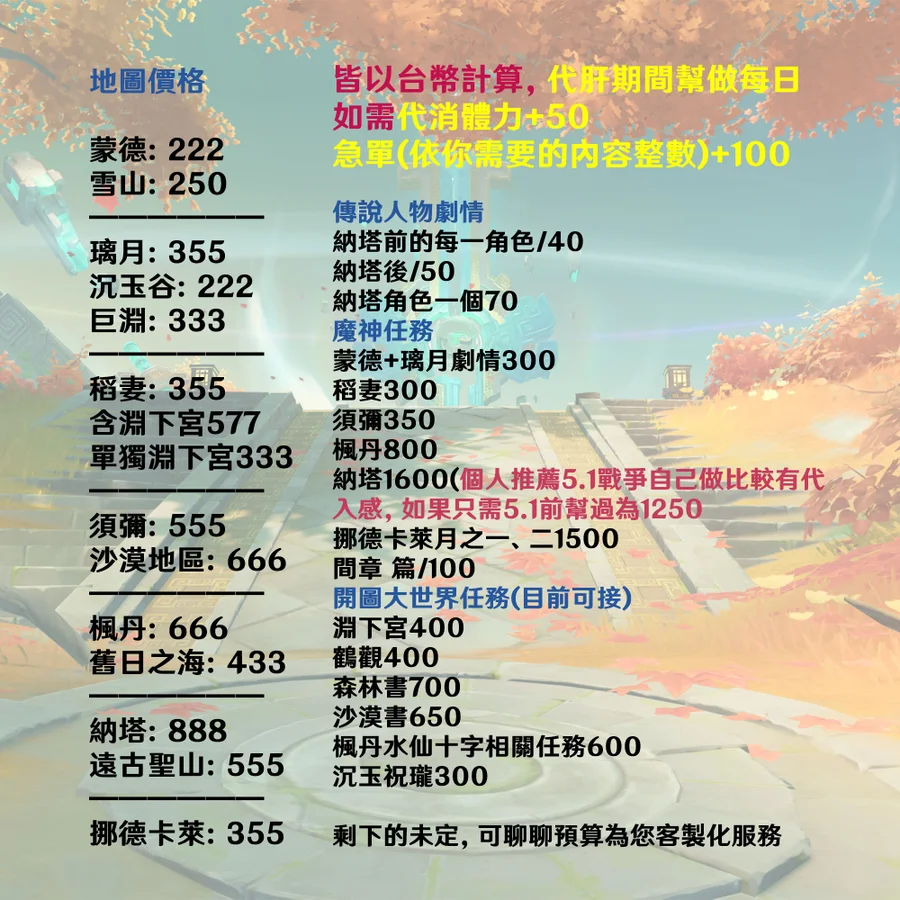 原神/台港澳服/亞服/美服/劇情地圖代肝