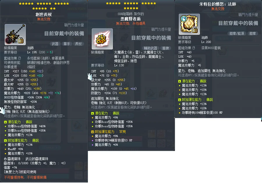 創世雙B魔附加大雙(武公傷害7%) / 米特拉59魔 / 副武雙B魔附加罕雙排