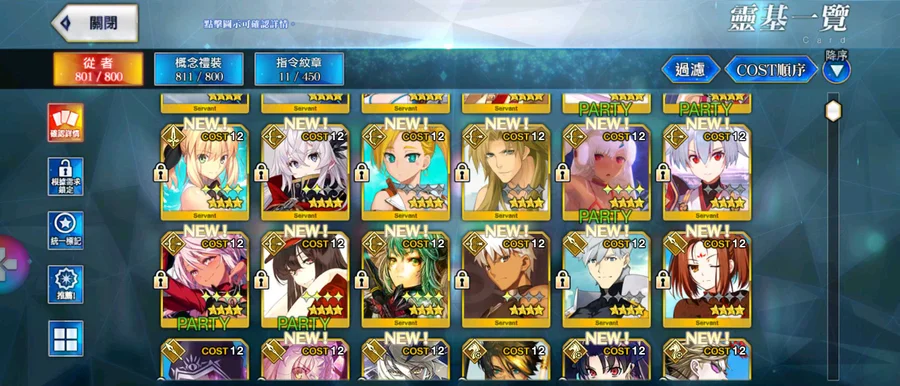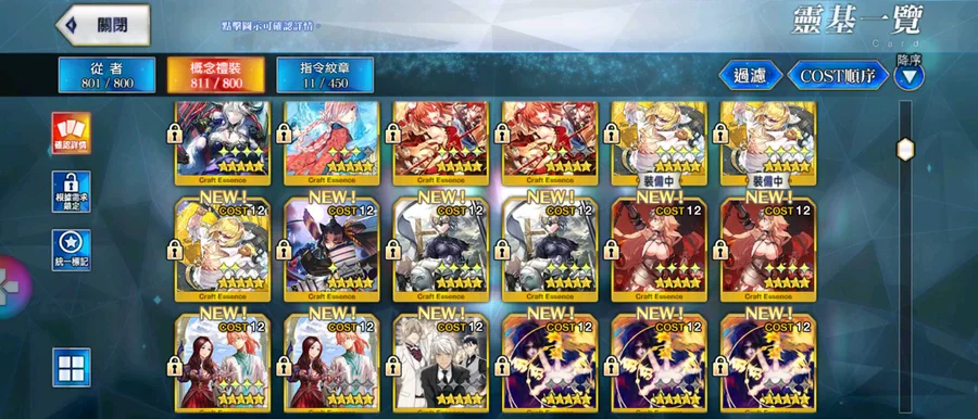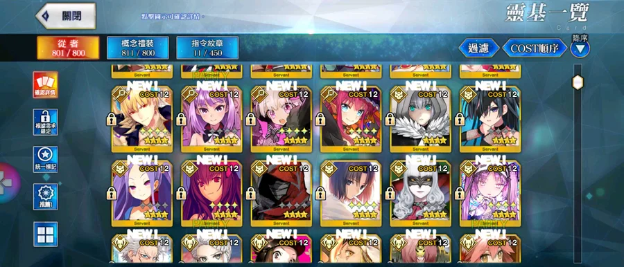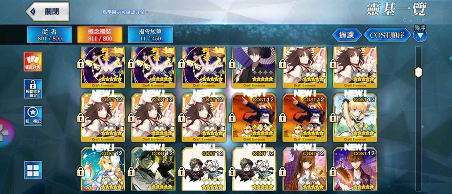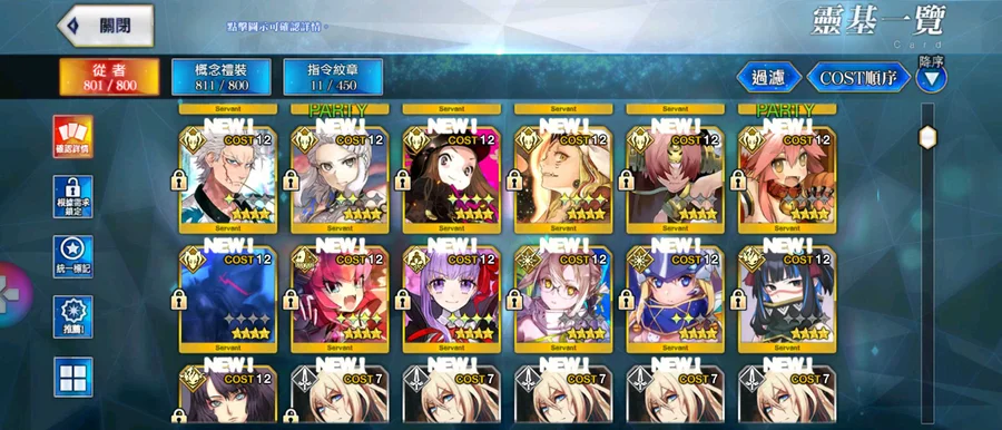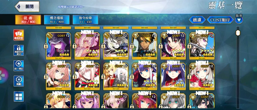 黑貞,術傻,孔明,梅林,龍馬,沖田,武田等超多五星,聖晶石還有2百多,多頂級禮裝