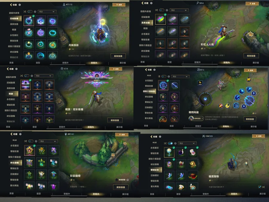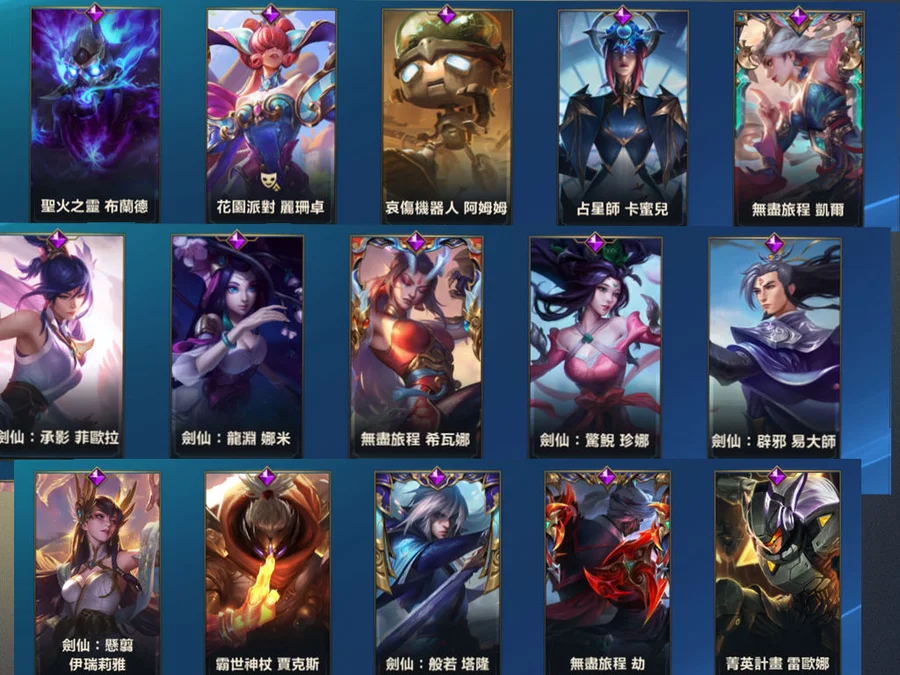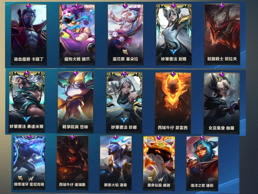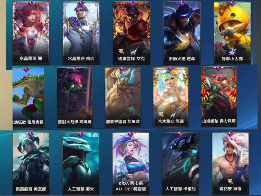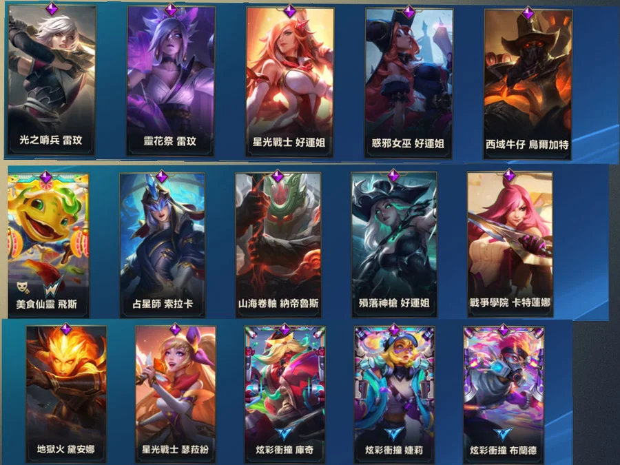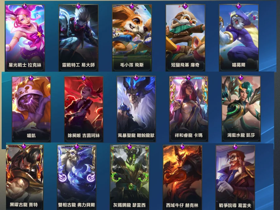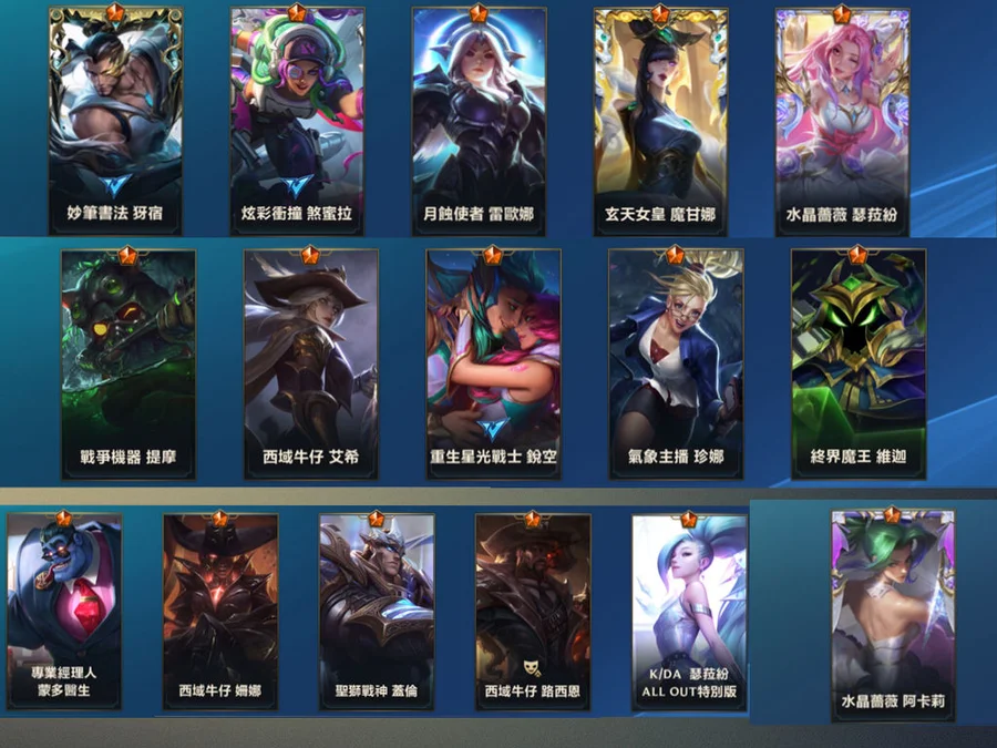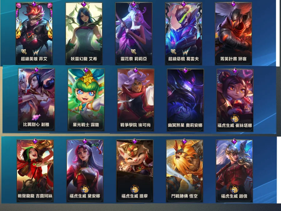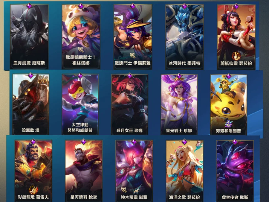 目前有全英雄 神話造型:14 傳說造型:31 史詩造型:178 一般造型:84
