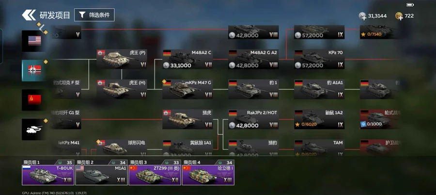 戰爭雷霆手遊賬號,有中系限定車,還有其他限定車,空戰有xp55,海戰有汐潮級,還有花尾鴿等