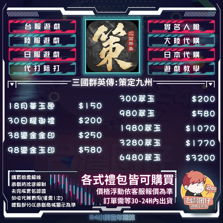 🏆三國群英傳:策定九州 陸服代儲賣場|
