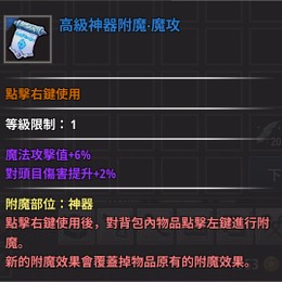 屬性,魔法攻擊值+6%,對頭目傷害提升+2%)