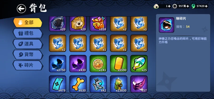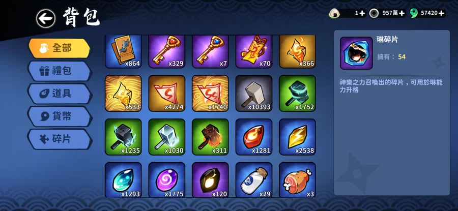 滿倉的紋石、覺醒石、龍血、忍幣、槌子、扳手,價值3000up。