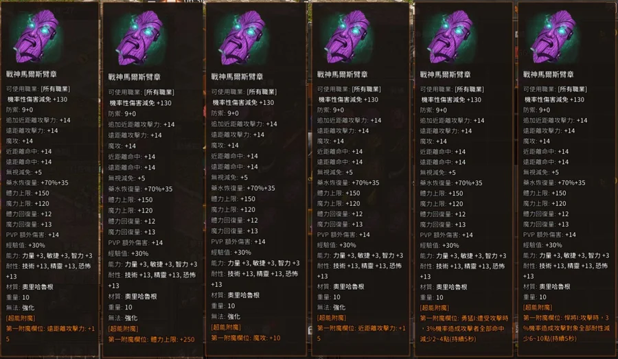 賣戰神馬爾斯臂章(近距離攻擊+15.勇猛1.悍將1.HP250.MP200)