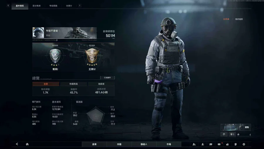帳號賣點:全套碧海彎刀,全套黃金H416,全套賽博朋克聯動餘燼,全套都市守望,傳奇套裝,第六小組M4,全套怒獅等槍皮 帳號資產:501M,科恩幣440000K,十六個滿耐戰神頭,880點券
