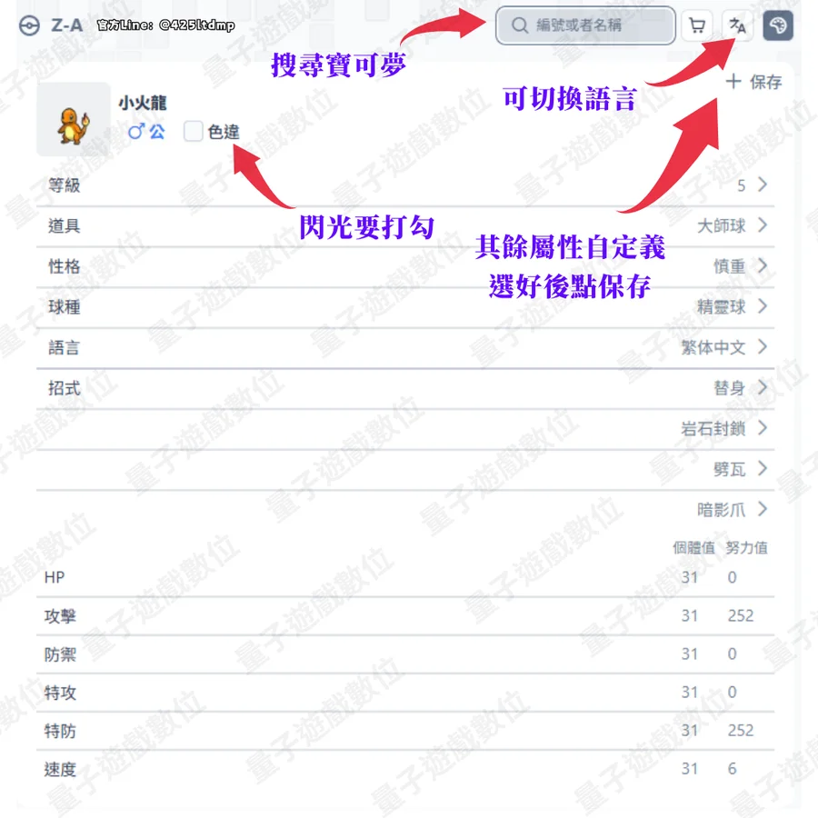 所有成品寶可夢接是親自捕獲培育而成,語言為繁體中文。