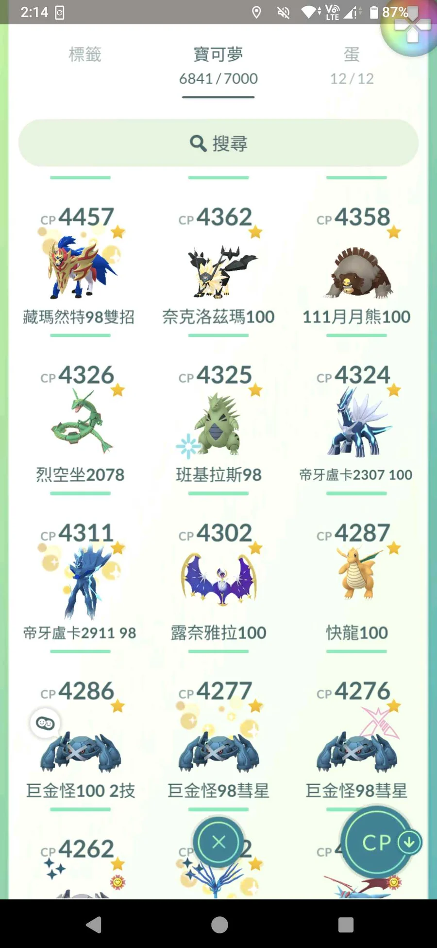 練度太高,圖片放不完,有裝甲超夢,紅隊70級可80級超高練度完全陸軍帳號,2017年初老帳號,想得到的寶可夢幾乎全練了,有絕版格拉吉歐姿勢,服裝,包包擴至9550,xxl糖6百多顆,金梅果5400顆,皮幣1萬5千多,星沙1000多萬