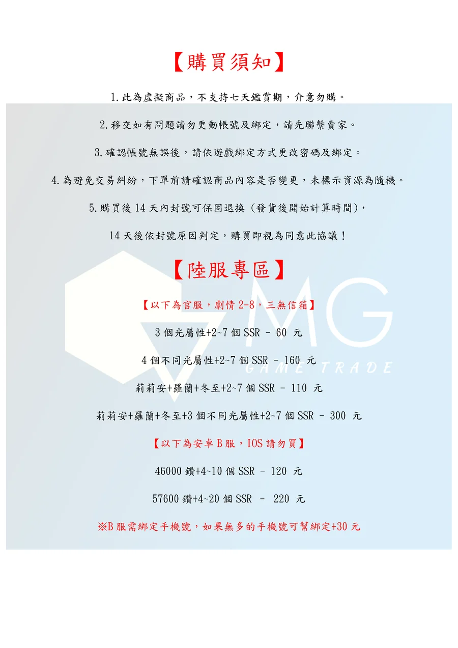 4.為避免交易糾紛,下單前請確認商品內容是否變更,未標示資源為隨機。