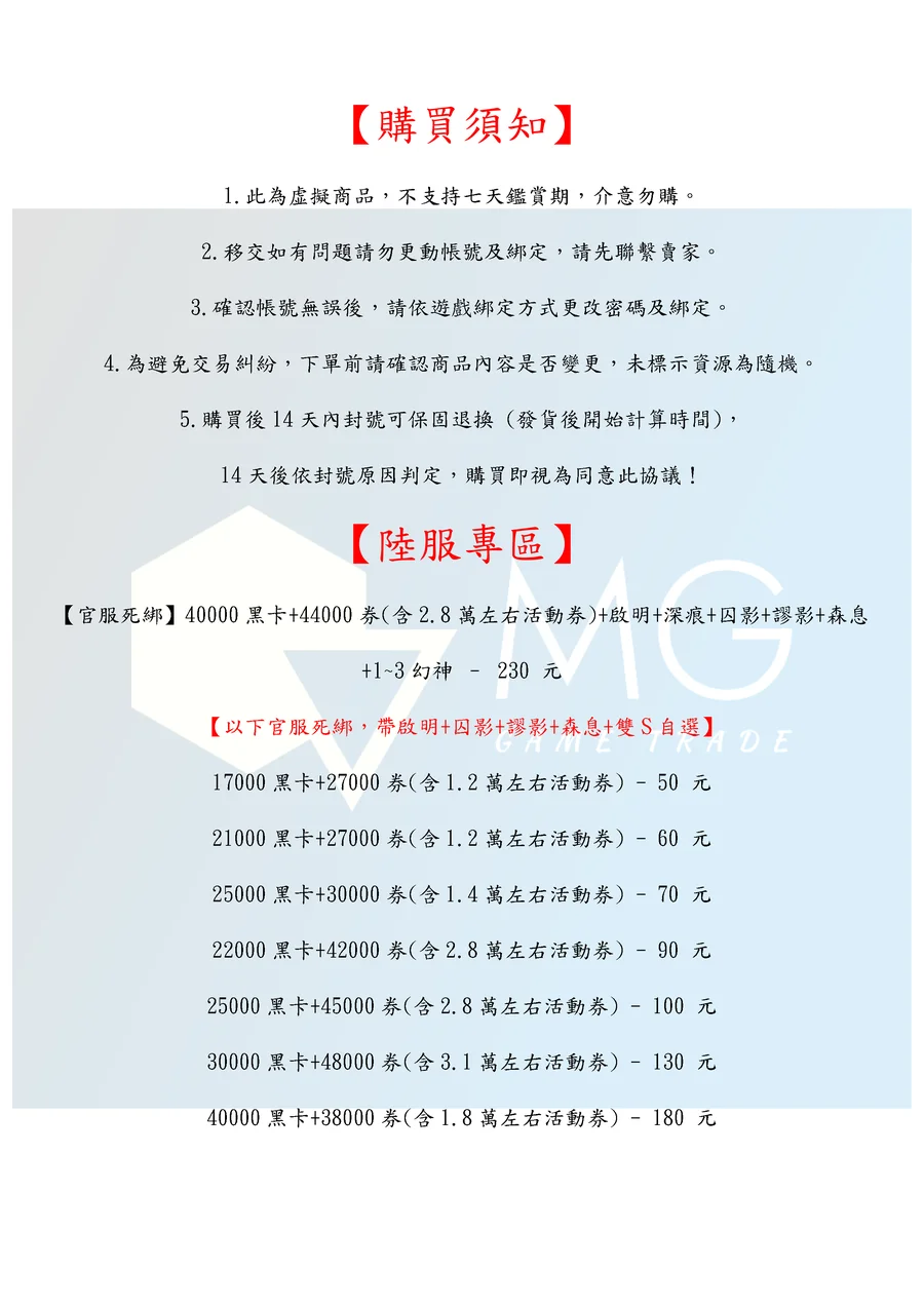 2.移交如有問題請勿更動帳號及綁定,請先聯繫賣家。