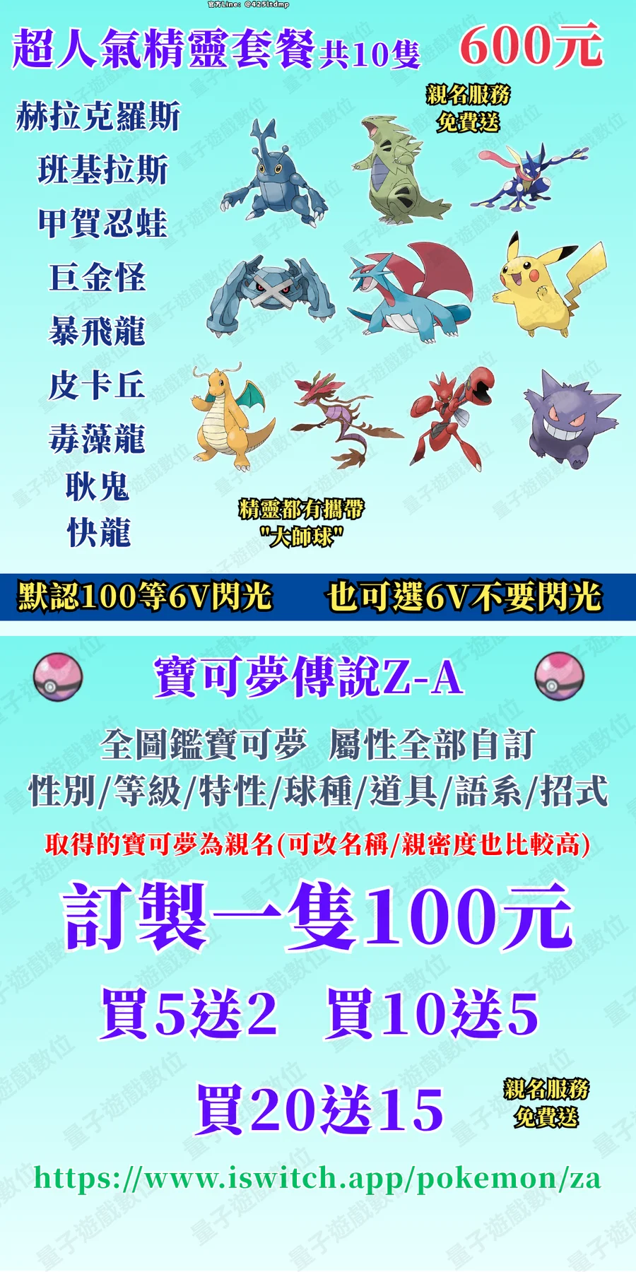 ▚▛寶可夢傳說ZA▟▚❌6V閃光色違頭目❌MEGA進化❌御三家❌免費送親名