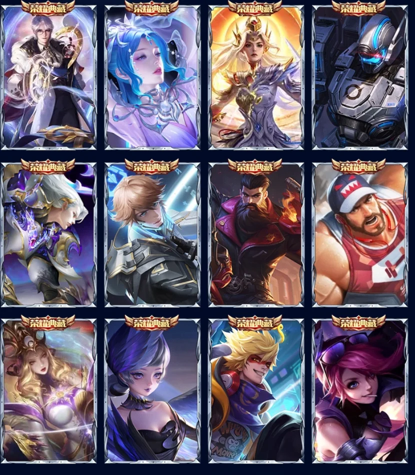 典娜冰冠公主宮本武藏鬼劍武藏呂布聖誕狂歡姐己女僕咖啡甄姬冰雪圓舞曲蘭陵王暗隱獵獸者阿古朵江河有靈曹操幽靈船長孫尚香薔薇戀人劉禪