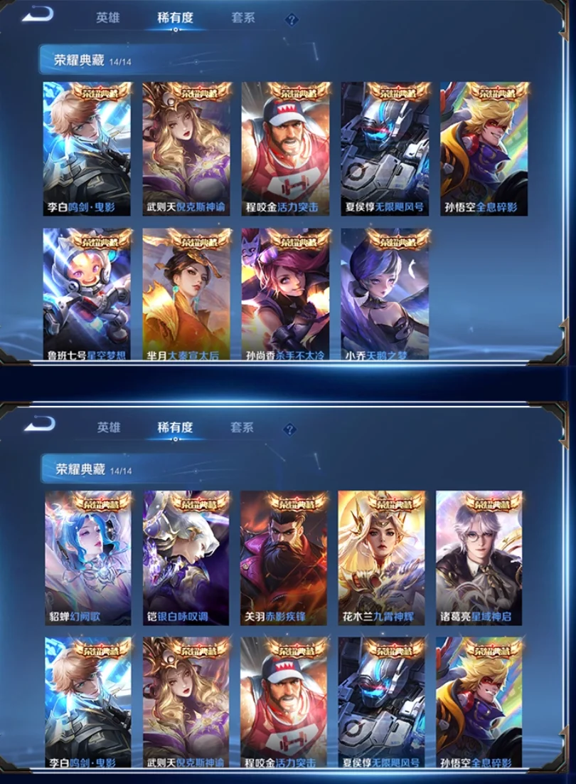 應+澐亨通李信灼熱之刃雅典娜聖域餘輝劉邦聖殿之光韓信街頭霸王海月幻泉霧影哪吒次元突破李白範海辛劉備紐約教父夏侯惇戰爭騎士雲纓赤
