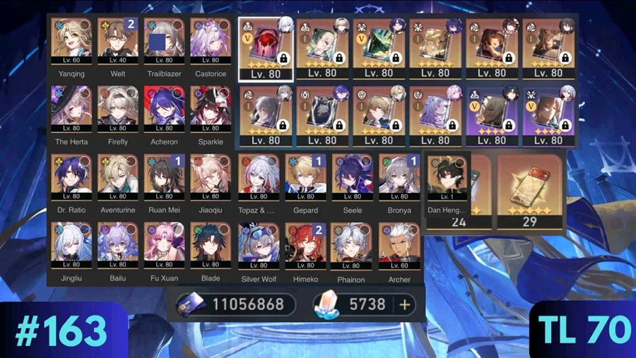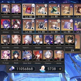 【女、70等、30金角、18金專】✅遐蝶+流螢+黃泉+花火+1命阮梅有專_大黑塔_白厄_椒丘_砂金_符玄_刃_鏡流