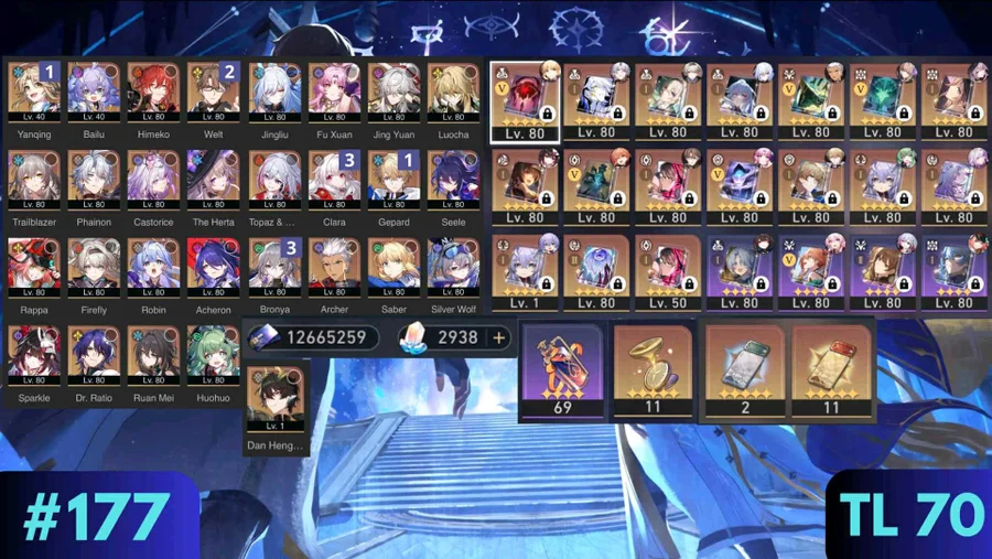 【女、70等、37金角、33金專】✅遐蝶+鏡流+流螢+大黑塔+白厄+花火皆有專武_3命克拉拉_符玄_羅剎_景元