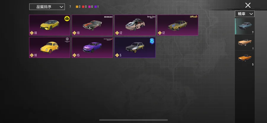 轎車:路特斯 謝爾比 金龜車(妹子最愛) 道奇紫