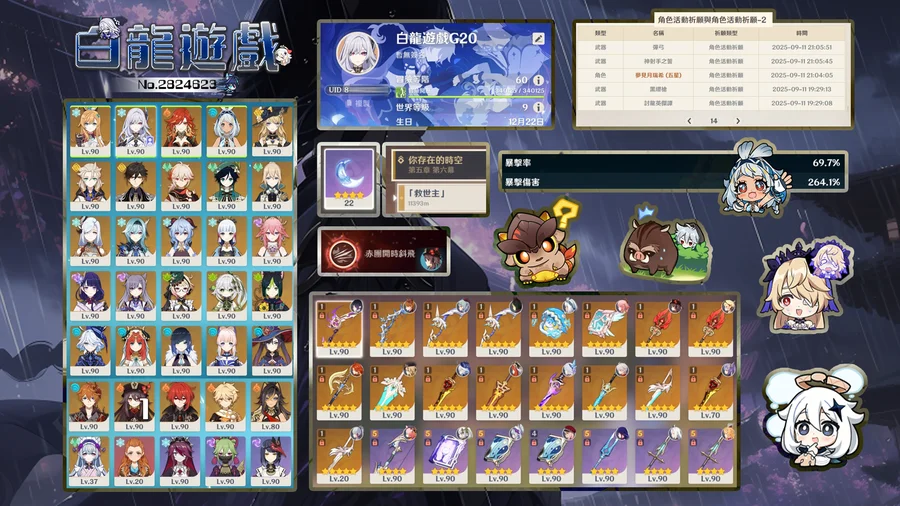 【男、60等、40金角、17金武】G20_妮露0+1瑪拉妮0+1胡桃1+2絲柯克愛可菲火神草神水神心海夜蘭雷神八重