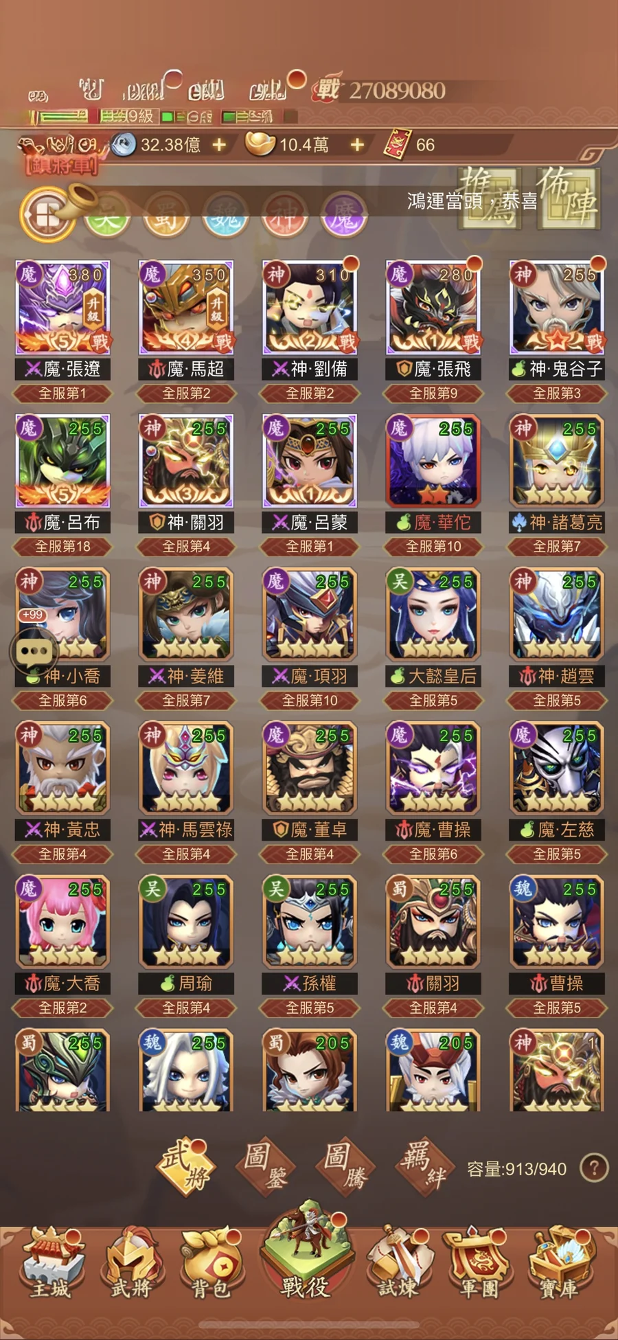 【137等】2700萬s2 v11 劉備 馬超 張飛 鬼谷 呂布 張遼 呂蒙