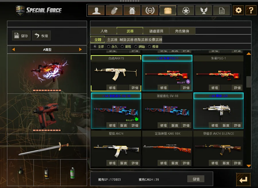 快樂玩 多槍多刀 伊邪/巴拉/范將軍/白P/黃AK/蓓兒 其它自己看