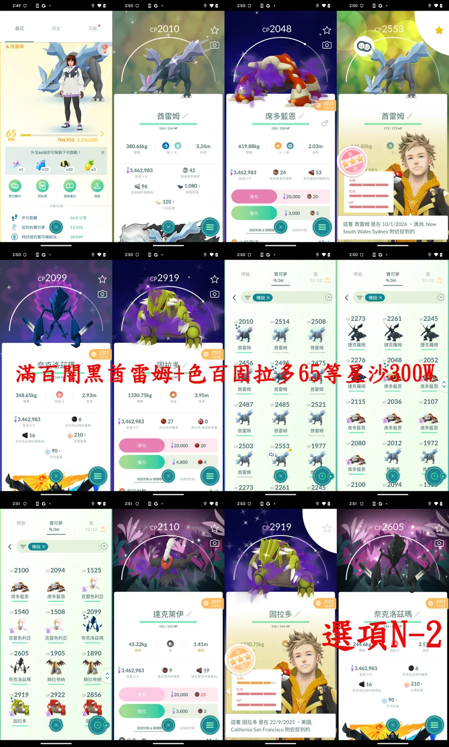 (選項N) 角色等級70等+700萬星沙 主打滿百闇黑酋雷姆(未合體已灌滿50級)+滿百露奈雅拉 (選項N-1) 角色等級68等+2400萬星沙 主打滿百闇黑酋雷姆(未合體已灌滿50級) (選項N-2) 角色等級65等+300W星沙 主打滿百闇黑酋雷姆(未合體)+色百固拉多 (可淨化滿百或等王冠升級暗影百)