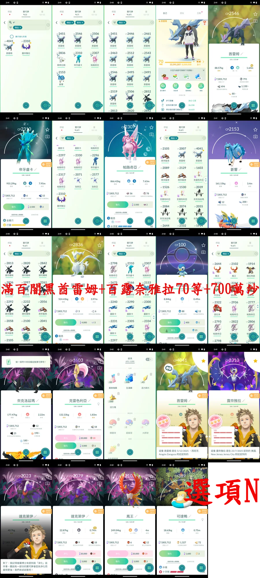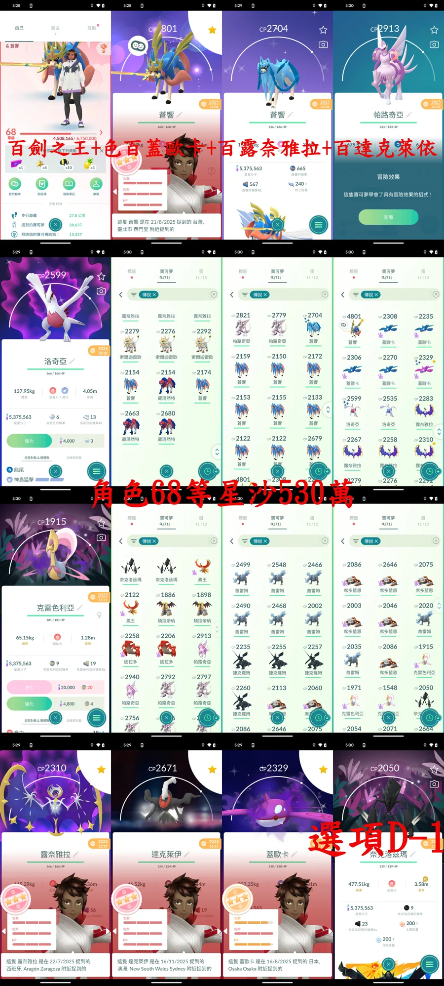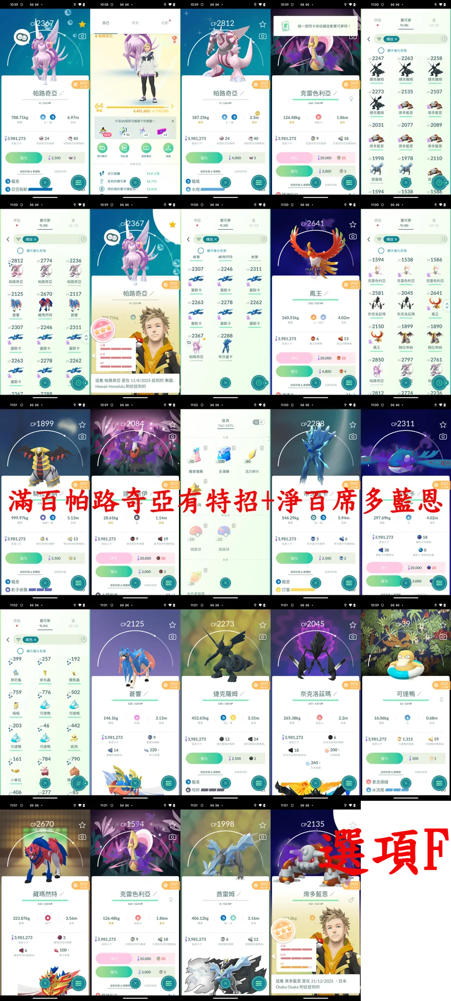 (選項F) 雙百神 角色64等星沙390W 主打滿百帕路奇亞(有特招)+淨百席多藍恩